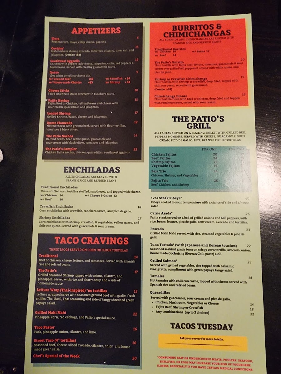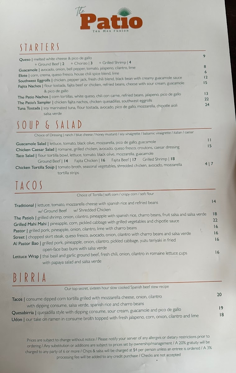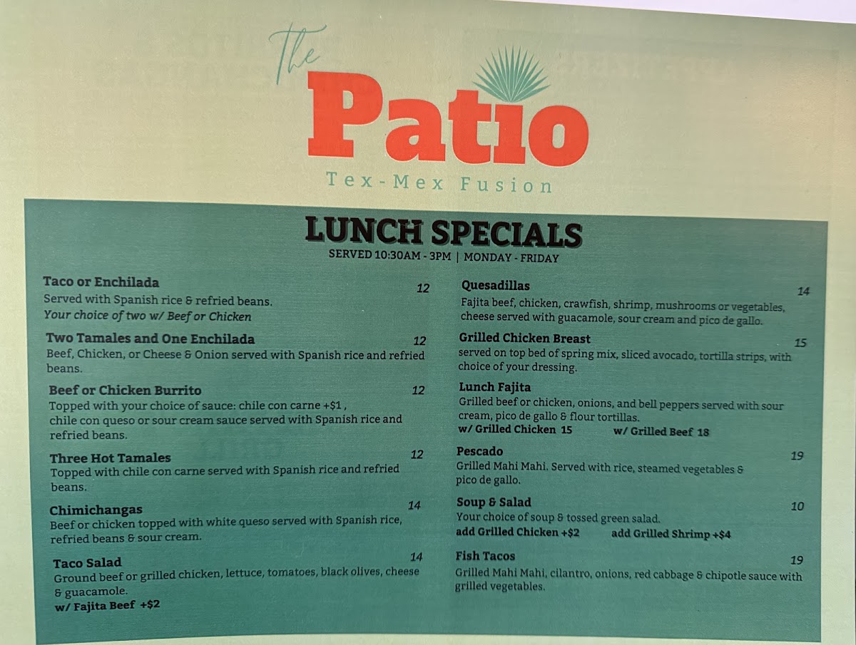 The Patio Tex-Mex Fusion Menu