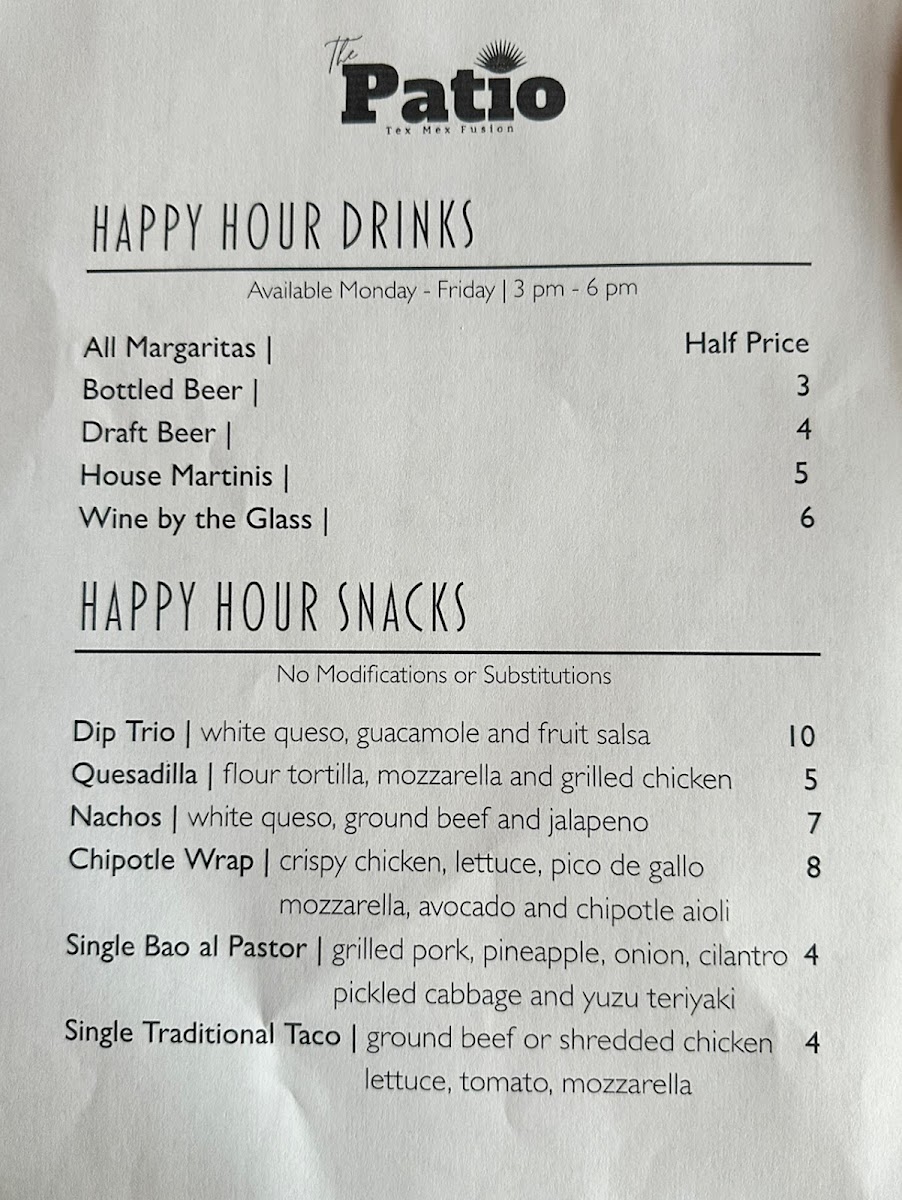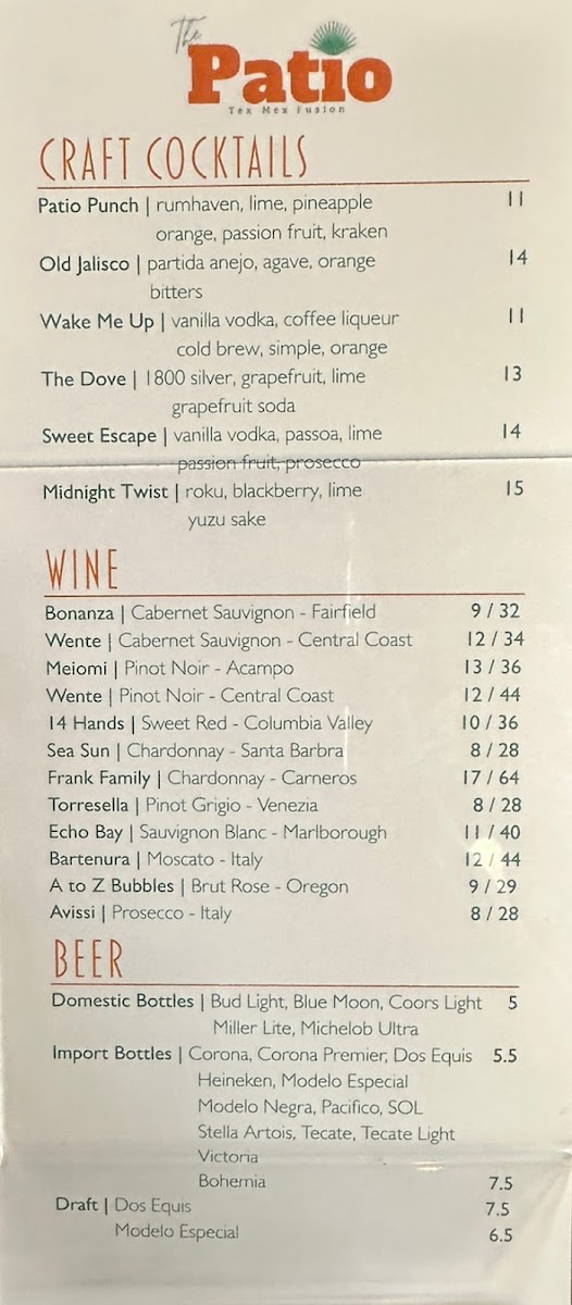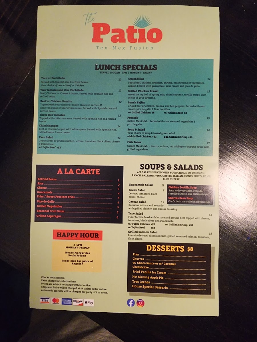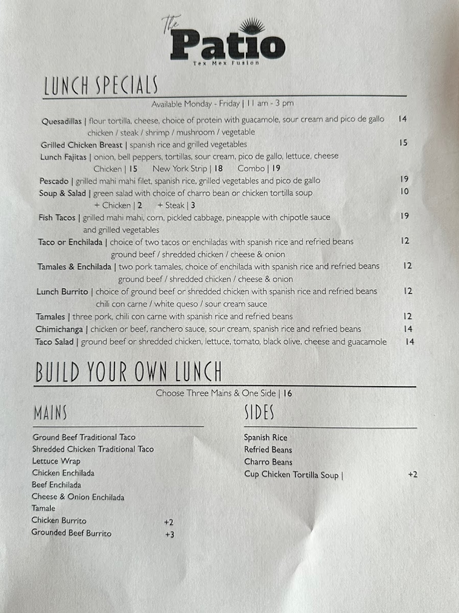 The Patio Tex-Mex Fusion Menu