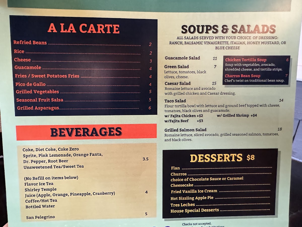 Main dishes often include traditional favorites such as hearty quesadillas and tamales served with comforting sides, along with grilled seafood options that bring a lighter touch. Soups and salads provide satisfying choices for those seeking something a bit fresher, while the combination of familiar staples and carefully crafted dishes fits well with both indoor and comfortable outdoor seating, inviting guests to enjoy food in a laid-back setting.